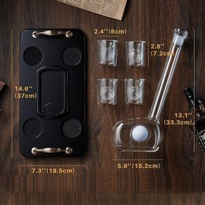 This Golf-Themed Glass Whiskey Decanter Set is a must-have for golf enthusiasts and whiskey lovers. The unique golf club shape and embedded golf ball details add a touch of elegance and fun to any home bar or office. The set includes four matching shot glasses with a stylish golf ball texture, perfect for gatherings or parties.This high-quality decanter can be used for whiskey, bourbon, scotch, or wine, adding sophistication and novelty to your drinkware collection. It makes a great gift for golfers, whiskey aficionados, or business associates on occasions like Father's Day, birthdays, retirements, or corporate gifting.