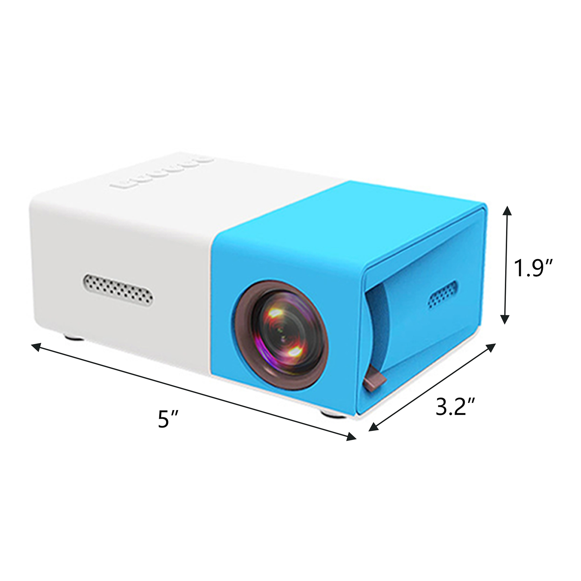 Additional Information5" L x 3.2" W x 1.9" H mini portable projector is made of ABS material