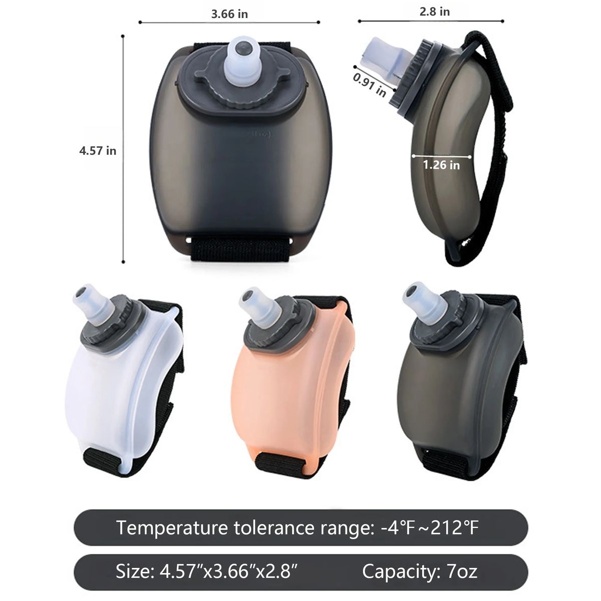 Additional InformationLightweight PP wrist bottle, leak proof, ergonomic, screenprintable, perfect for outdoor activities.